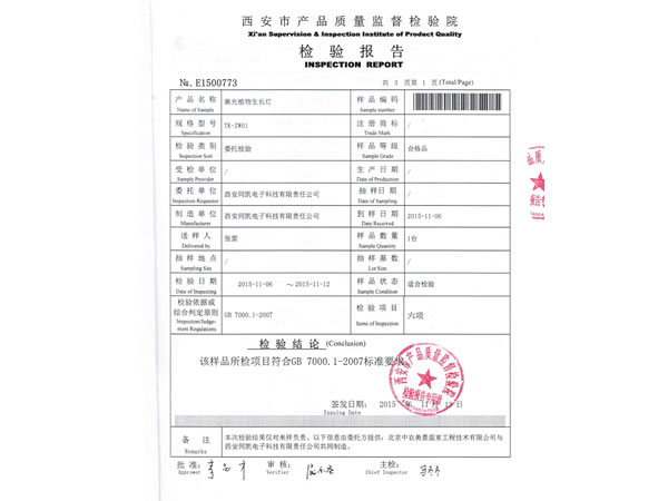 2015年11月13日获得西安市产品质量监督检验院检测报告;